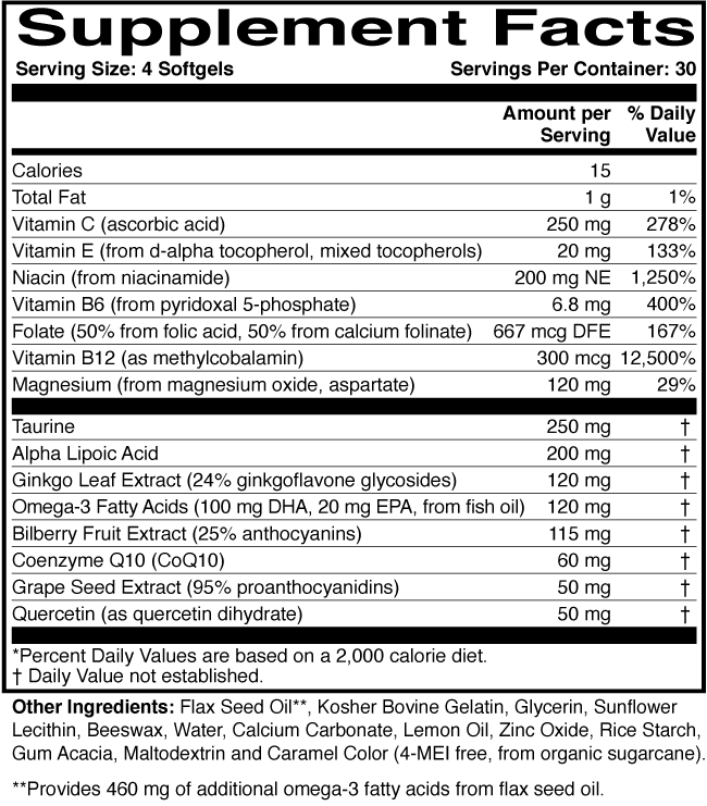 This specialized nutritional formulation helps to support optic nerve health with a blend of antioxidants such as Ginkgo biloba, bilberry and grapeseed extracts, plus alpha lipoic acid, omega fatty acids and other key nutrients. These ingredients work to boost antioxidant levels, help support healthy nerve function, and to help maintain normal ocular circulation.
